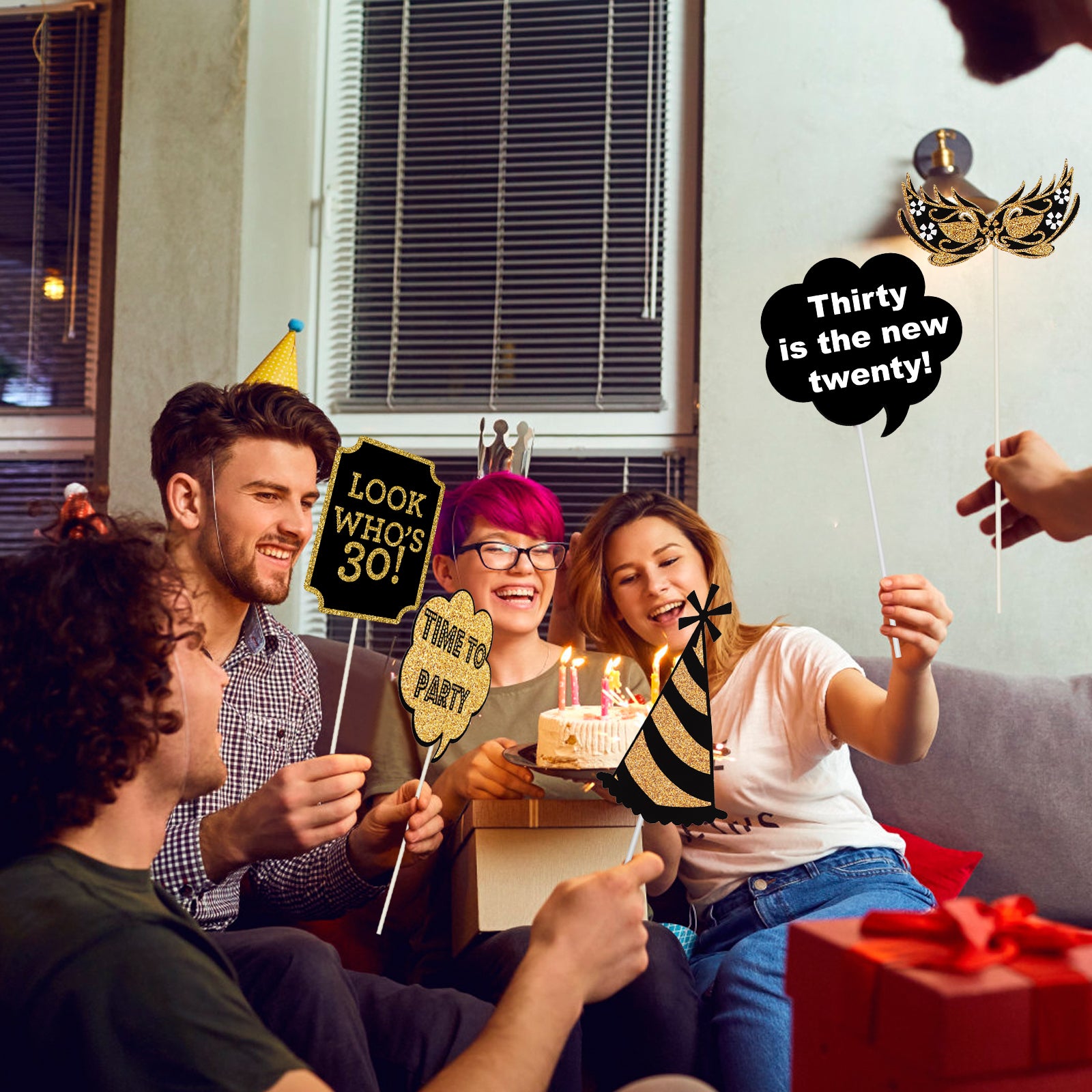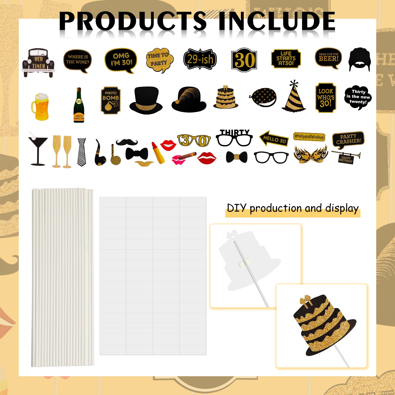 - Indispensable 30th birthday favor:41PCS props included, these fantastic Photo Booth Props will be a hit at the birthday party! You will get so much fun at the 30th birthday party for him or her, a great 30th birthday celebration for men and women!